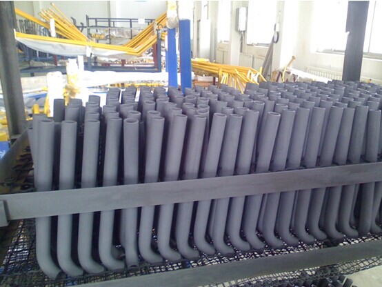 在中溫磷化液中,由于含有大量氧化型促使劑,只要槽液不是大負荷連續操作,一般不會產生Fe2+過量問題,Fe2+形成磷酸鐵沉渣。上圖為使用中溫鋅系磷化的油管。